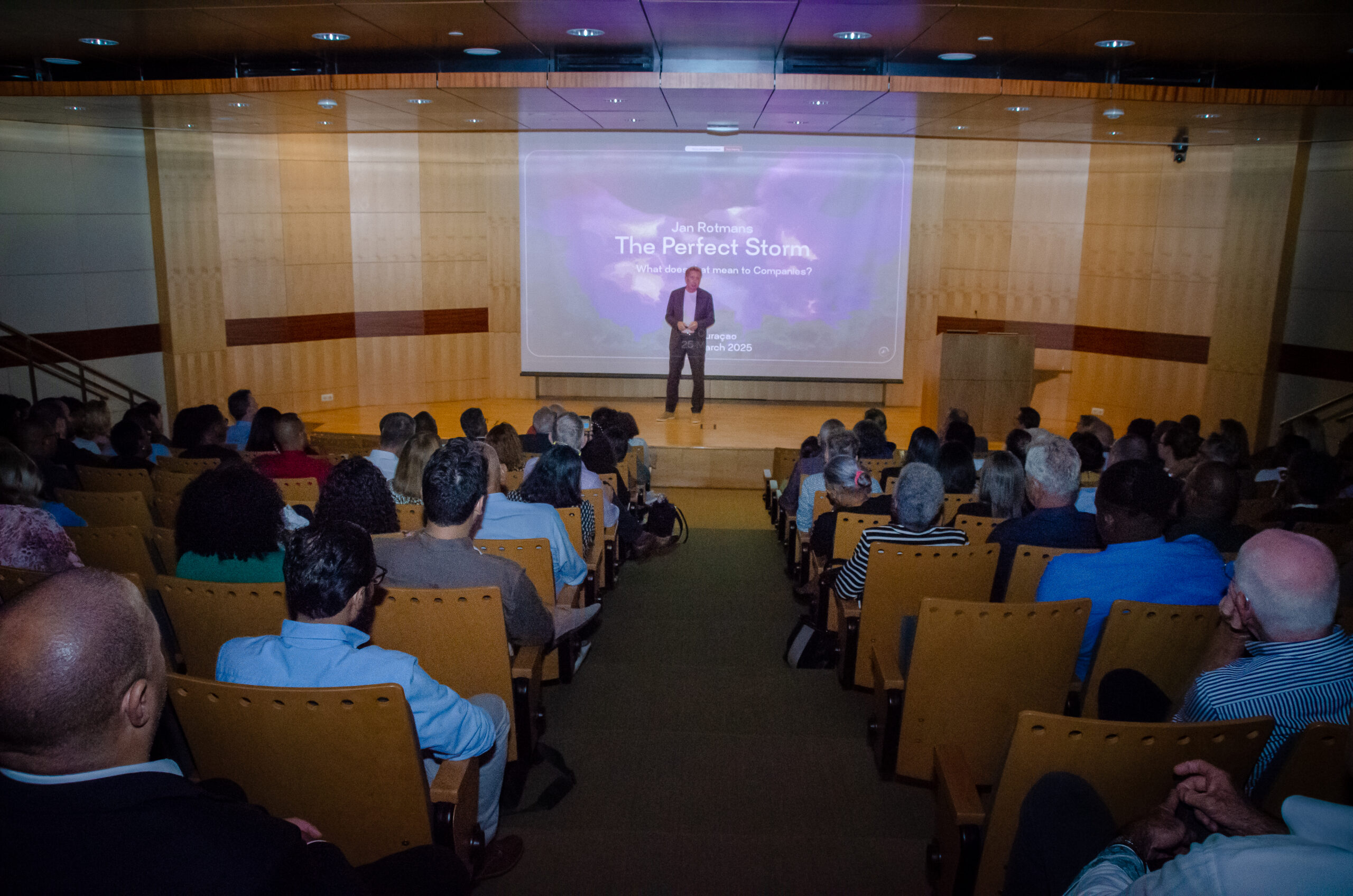 Met bijdragen van onder meer Pedzi Girigori (Meteo Curaçao) en dr. Stella van Rijn, en een interactieve paneldiscussie met Richard Doornbosch (CBCS) en Jan Rotmans, werd het publiek uitgedaagd om buiten bestaande kaders te denken. Centraal stond de vraag hoe we, als eiland en als samenleving, de balans vinden tussen economische groei, klimaatbestendigheid en maatschappelijke verantwoordelijkheid.