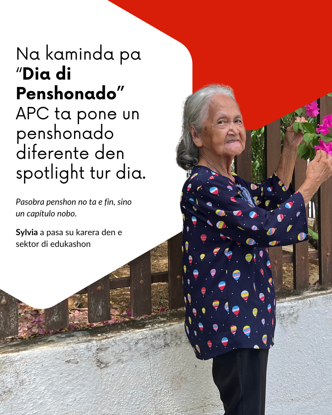 For di su penshon, Sylvia ta biba trankil i kontentu. E ta disfrutá di sali ku su yu i su ñietu, e ta partisipá den aktividatnan di Union di Penshonado pa Adelanto i Hustisia (UPAH), e ta lesa buki, traha pùzel i hunga ku su kachonan. Pero e ta sinti falta di traha si: “Mi trabou tabata mi hobby. Awor tin un bashí.” Pero e ta wak bèk ku plaser riba su tempu na skol: “Mayornan tabata kontentu ku mi. Nan tabata balorá mi, pasobra e muchanan malamucha tabata bira lif serka mi. Te ainda mi ta gosando di e memorianan ei.”